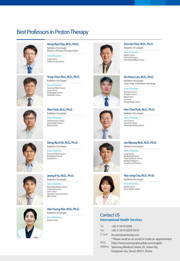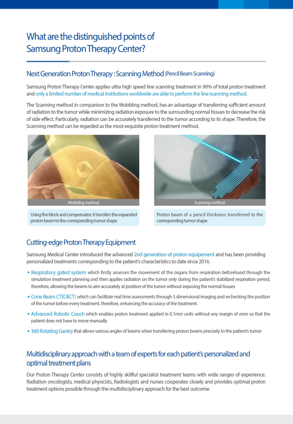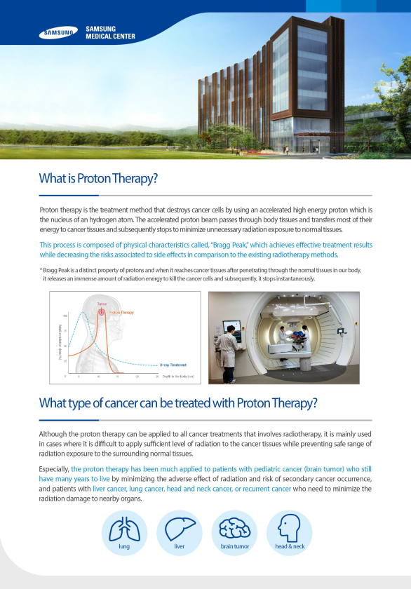 Xạ trị Proton là một loại xạ trị đích đặc biệt phá hủy khối u mà không làm ảnh hưởng tới các mô lành xung quanh khối u. Tại bệnh viện lớn của Hàn Quốc nhưng bệnh viện SAMSUNG nơi có thể tiếp nhận cả bác bệnh nhân nhi khoa cần xạ trị.
